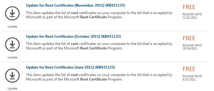 A search at http://www.microsoft.com/download for Root certificate will help you and this will give you a result that looks something like this: