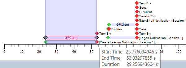 To get an idea where the problem could be, in this case GPClient take almost 30 seconds, which tells us the computer GPO’s is processing for a long time and should be investigated further.