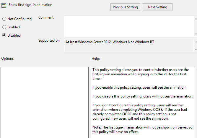 Computer Configuration\Administrative Templates\System\Logon\Show first sign-in animation