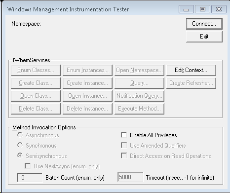 First we take a look in WBEMTEST, the built-in GUI to browse WMI.