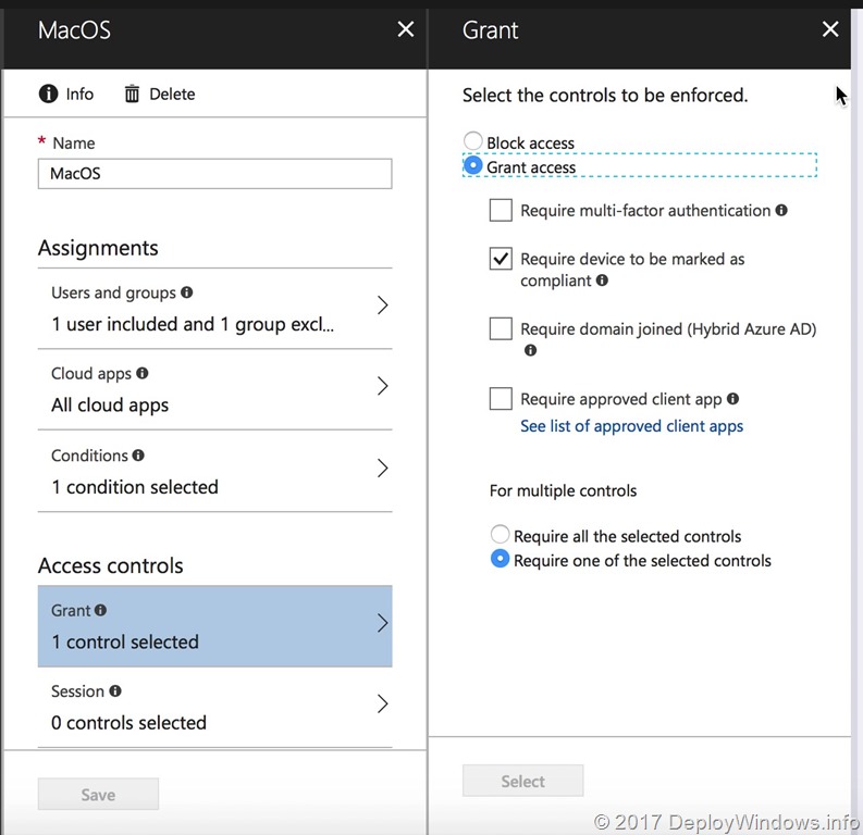 When configuring the Azure AD conditional access policies don’t forget to check “Require device to be marked as compliant”