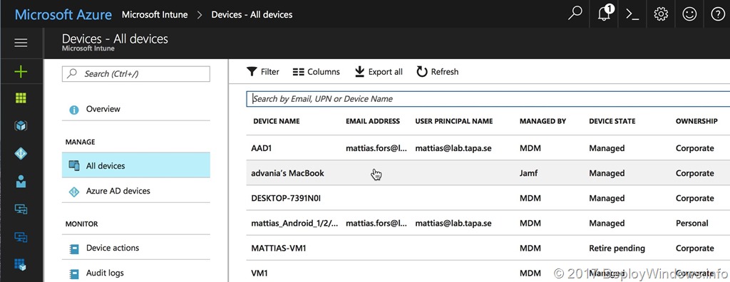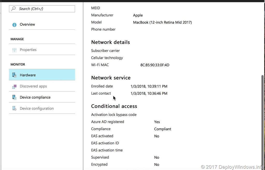 From the Azure Portal and the Intune blade, you can clearly see that the computer is manage by Jamf